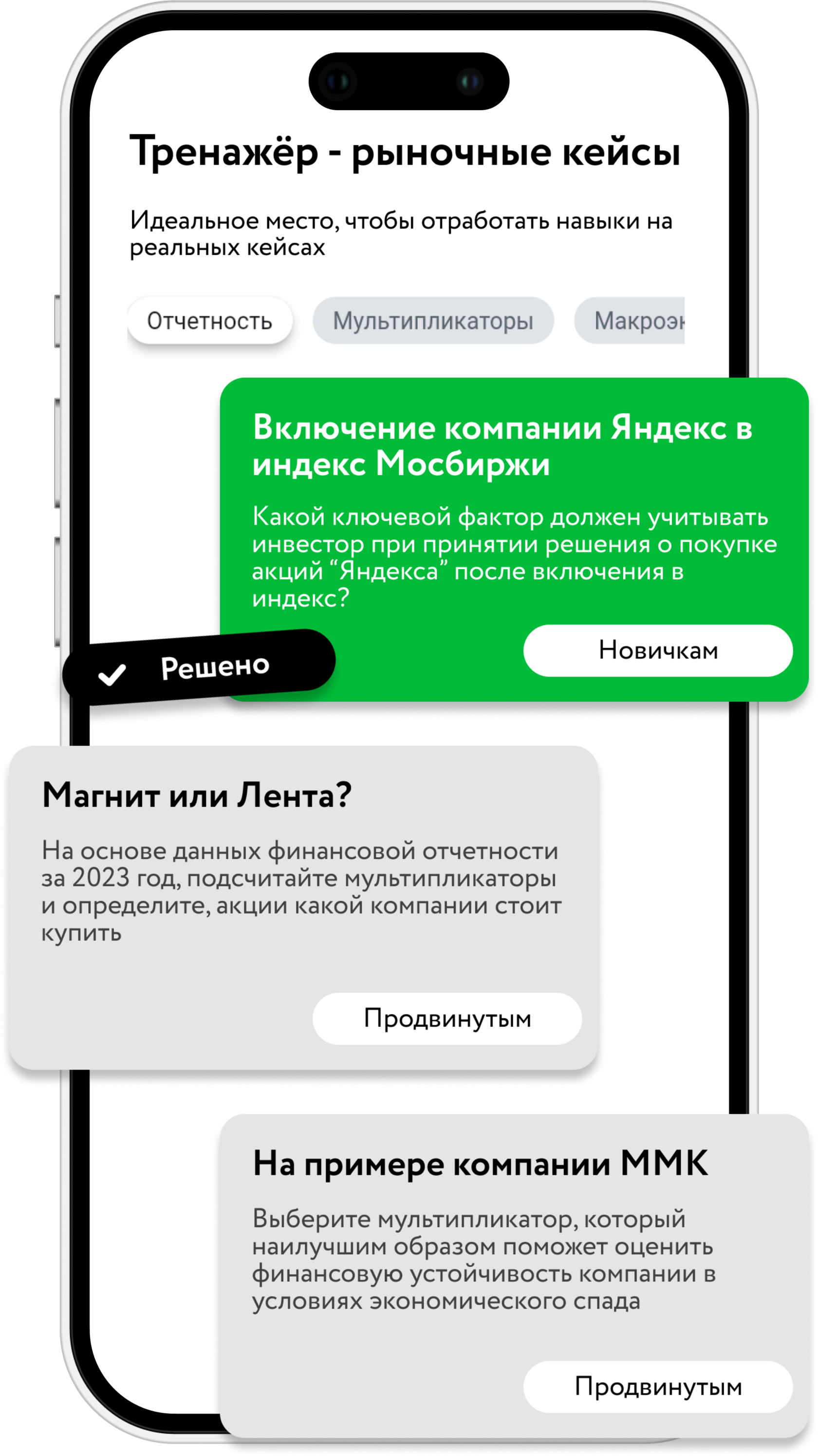 Симулятор обучает методам анализа акций и дает рекомендации по выбору компаний для инвестирования. Виртуальные портфели позволяют пользователям экспериментировать с различными стратегиями и видеть результаты своих решений.